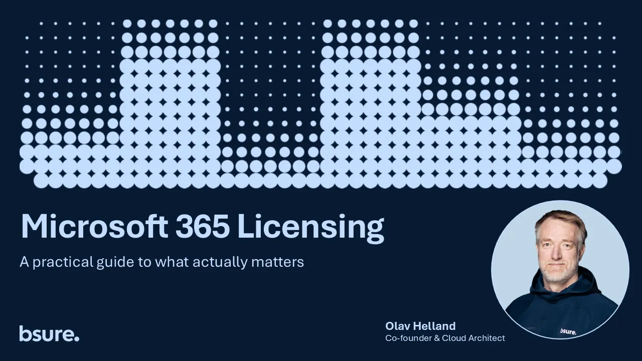 I dette webinaret går vi gjennom hvordan Microsoft 365-lisensiering faktisk fungerer i praksis. Fra abonnementer og SKU-er til serviceplaner og tenant-omfattende sikkerhetskomponenter. Og hvorfor mange virksomheter gradvis blir overlisensiert.