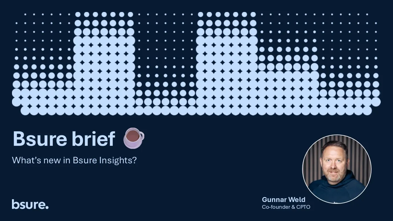 Bsure gets new features approximately every eight weeks, and we want to make sure you're getting the most out of them. That's why we're starting Bsure Brief: approximately every eight weeks, Gunnar, our CTPO, shows you what's new, why it matters, and answers your questions. Think of it as a quick catch-up with the person actually building your visibility-tool.